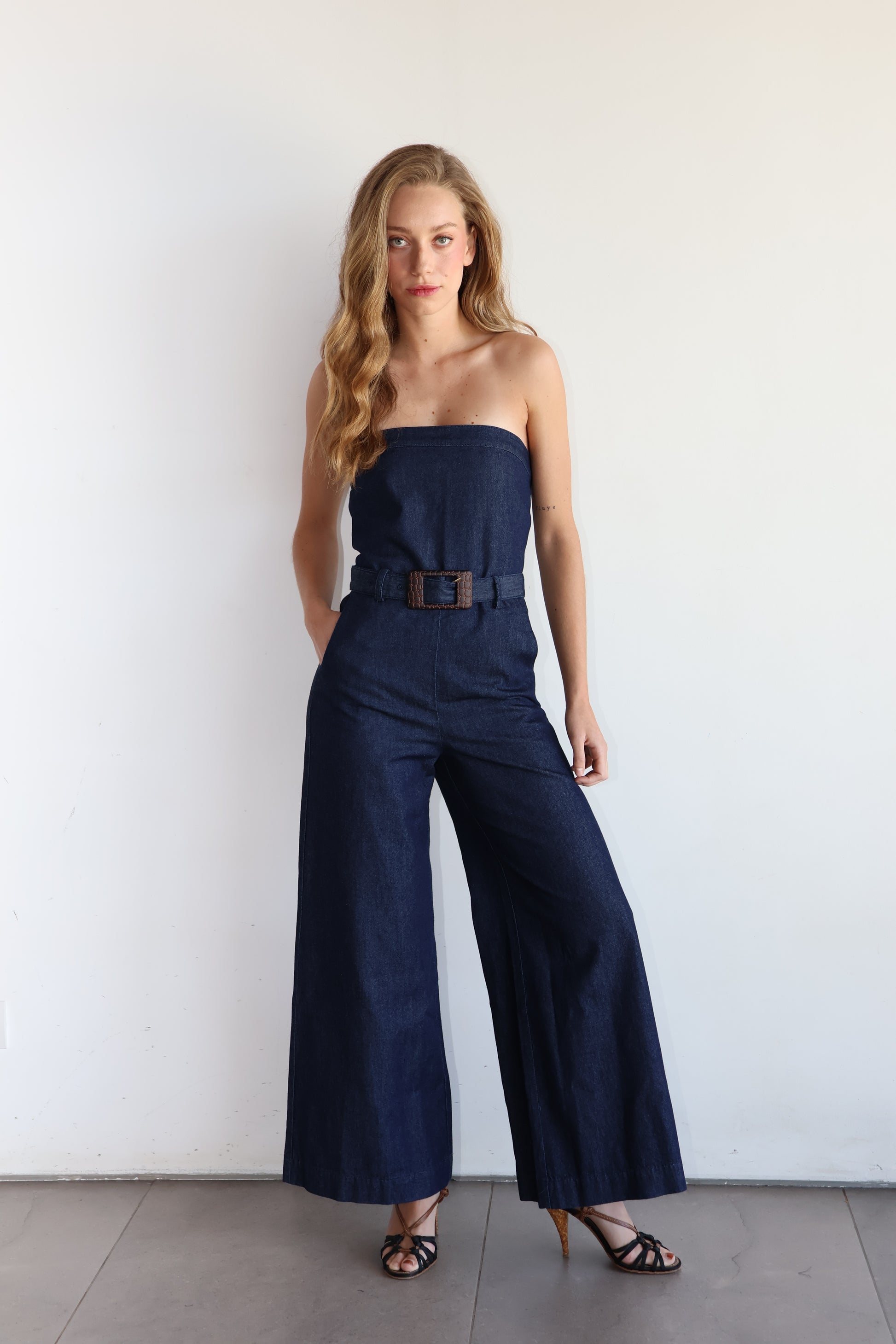 Enterito de jeans strapless. Confeccionado en algodón premium peruano.