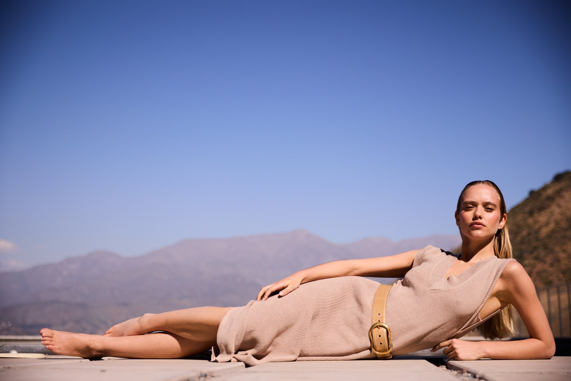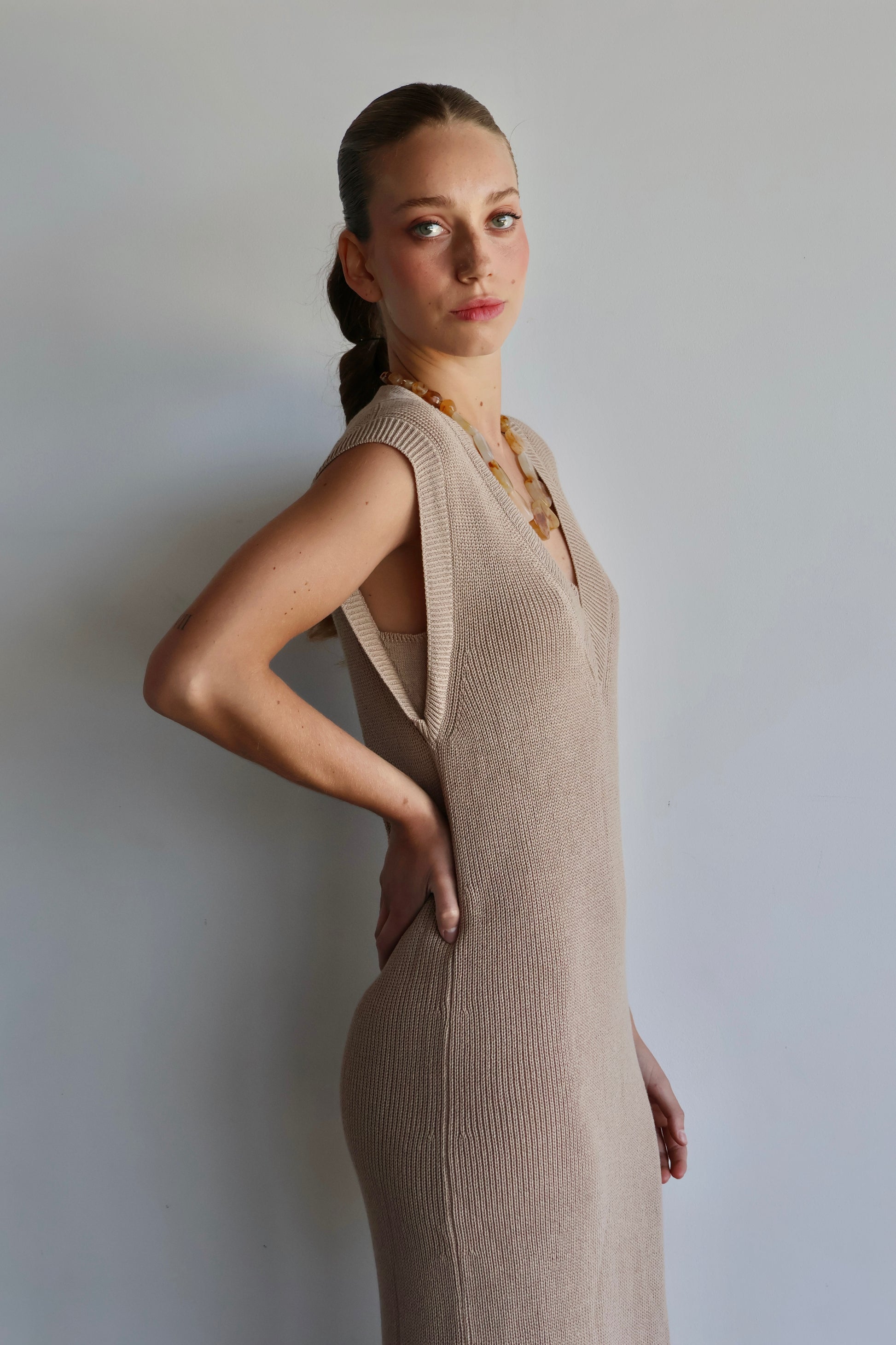Vestido tejido en un hilado de algodón y viscosa de la más alta calidad y fina confección.